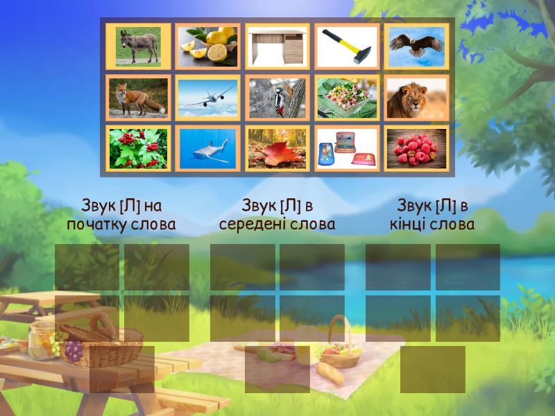 Звук [Л] на початку слова: , , , , , Звук [Л] в середені слова: , , , , , Звук [Л] в кінці слова: , , , , ,