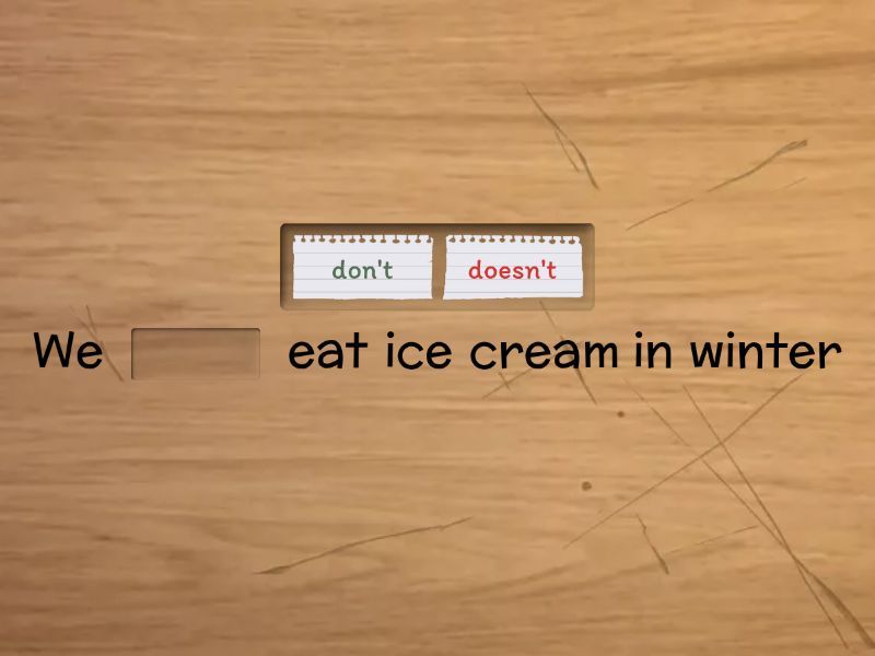We ____ eat ice cream in winter Tomy ____ always go to the office by bus You ____ understend my idea Lions ____ eat fruit Her grandparents ____ live in a flat Some people ____ travel by plane My sister ____ want to go skating Little Jony ____ like to play alone These apples ____ look fresh My mother ____ listen to news on the radio Martin ____ go fishing in winter My classmates ____ take part in the competition Her uncle ____ wear jeans Vicky ____ grow roses in her garden They ____ know the rules of this game