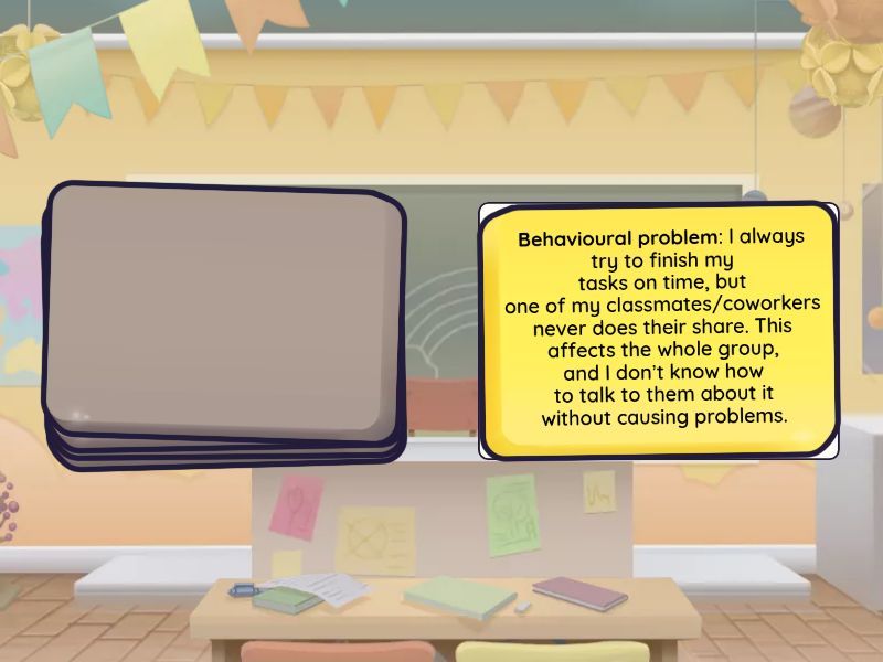 Practical problem: I'm preparing dinner for friends, but suddenly I realised I do not have one important ingredient. The nearest store is far, and my friends will arrive in 30 minutes., Health problem: I have been feeling dizzy and have had a high temperature for two days. I want to see a doctor, but I don’t have a car, and the clinic is only open during work hours when I'm at school/work., Technical problem: I'm working on a presentation for an important meeting. But, my computer just crashed, and I lost the file I’d been working on for hours. I don’t have a backup, and the meeting is tomorrow morning., Behavioural problem: I always try to finish my tasks on time, but one of my classmates/coworkers never does their share. This affects the whole group, and I don’t know how to talk to them about it without causing problems., Logistical problem: I planned a weekend trip with my friends, but our flight was cancelled due to bad weather. Now I need to find another way to reach the destination, but trains and buses are fully booked..