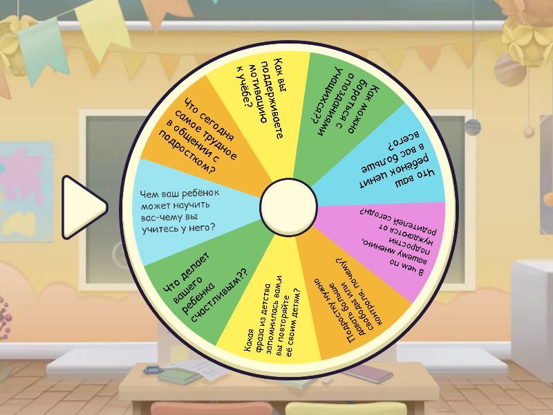 1) Что сегодня самое трудное в общении с подростком? 2) Как вы поддерживаете мотивацию к учёбе? 3) Как можно бороться с опозданиями учащихся?? 4) Что ваш ребёнок ценит в вас больше всего? 5) В чем по вашему мнению, подростки нуждаются от родителей сегодн? 6) Подростку нужно давать больше свободы или контроля, почему? 7) Какая фраза из детства запомнилась вам,и вы повторяйте её своим детям? 8) Что делает вашего ребенка счастливым?? 9) Чем ваш ребёнок может научить вас-чему вы учитесь у него?