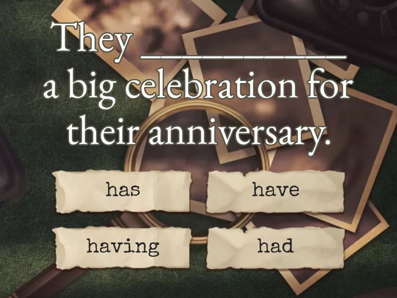 1) They __________ a big celebration for their anniversary. a) has b) have c) having d) had 2) We __________ at the restaurant last night. a) ate b) eaten c) eat d)  eating 3) She ___________out of the window. a) Looks b) Looked c) Had Looked d) Look 4) I ….. this floor yesterday a) Swept b) Sweep c) Sweeps d) Sweped 5) They _____ the new movie last weekend. a) see b) saw c) seen d) seeing 6) ………he read novel last night? a) Do b) Did c) Done d) Are 7) He didn’t . . . . . the answer for that question a) Knew b) Knows c) Know d) Knowing 8) She didn’t . . . . . her holiday anywhere. a) Spent b) Spending c) Spend d) Spends 9) Did he . . . . . english last night? a) Studies b) Studied c) Study d) Studying 10) He _____ a delicious cake for her birthday. a) bake b) bakes c) baking d) baked