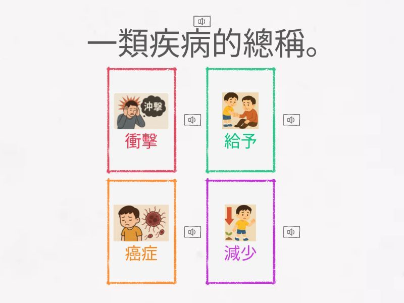1) 維護保持。 a) 減少 b) 維持 c) 鍛鍊 d) 銅牌 2) 奮勇戰鬥。 a) 減少 b) 拳擊 c) 崎嶇 d) 奮戰 3) ⑴比喻處境艱難。⑵山路高低不平。 a) 崎嶇 b) 椰子 c) 腐爛 d) 奮戰 4) 一種西洋拳術運動。 a) 癌症 b) 維持 c) 奮戰 d) 拳擊 5) 一類疾病的總稱。 a) 減少 b) 給予 c) 癌症 d) 衝擊 6) ⑴比賽中的第三名。⑵銅質的牌子。 a) 椰子 b) 銅牌 c) 即使 d) 給予 7) 常常。 a) 椰子 b) 衝擊 c) 銅牌 d) 屢屢 8) 縮減降低、少於原來的數量。 a) 崎嶇 b) 減少 c) 鍛造 d) 椰子 9) 拿東西給別人。 a) 椰子 b) 銅牌 c) 鍛造 d) 給予 10) 種子發芽時,胚芽上端向上生長的幼小植物體。 a) 減少 b)  幼苗 c) 奮戰 d) 維持 11) 植物名。 a) 減少 b) 鍛造 c) 給予 d) 椰子 12) 縱使、就算是。 a) 減少 b) 即使 c) 拳擊 d)  幼苗 13) 腐壞潰爛。 a) 維持 b) 椰子 c) 腐爛 d) 癌症 14) ⑴打擊、影響。⑵衝撞碰擊。 a) 衝擊 b) 腐爛 c)  幼苗 d) 拳擊 15) 把金屬用力敲或壓,讓它變成想要的形狀和大小,還會改變金屬的特性。 a) 鍛造 b) 拳擊 c) 減少 d) 衝擊 16) ⑴磨練。⑵冶鍊金屬使其更加精純。 a) 腐爛 b) 即使 c) 鍛鍊 d) 椰子