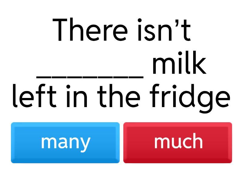 1) There isn’t _______ milk left in the fridge a) many b) much 2) There are _______ cars on the road this morning a) plenty of b) much 3) There are _______ people waiting outside the shop. a) many b) both 4) We don’t have _______ homework tonight. a) a few b) much 5) Please give me _______ water. I’m very thirsty. a) a little b) a few 6) I didn’t see _______ students in the library. a) any b) some 7) There are _______ chairs in the classroom, so everyone can sit down. a) both b) enough 8) We have _______ money left after paying the rent. a) each b) a lot of 9) There are only _______ apples in the basket. a) much b) a few 10) She speaks _______ languages fluently. a) several b) every