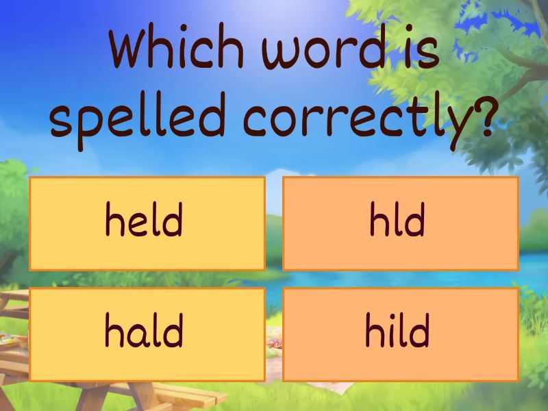 1) Which word is spelled correctly? a) held b) hld c) hald d) hild 2) Which word is spelled correctly? a) cherch b) church c) chursh d) chirch 3) Which word is spelled correctly? a) wunce b) once c) wons d) onse 4) Which word is spelled correctly? a) one b) wun c) wone d) wune 5) Which word is spelled correctly? a) ohn b) own c) oon d) onn 6) Which word is spelled correctly? a) bfor b) beefor c) before d) befour 7) Which word is spelled correctly? a) know b) noh c) kno d) noo 8) Which word is spelled correctly? a) no b) noo c) kno d) noh 9) Which word is spelled correctly? a) wer b) weer c) were d) wr 10) Which word is spelled correctly? a) wer b) where c) wheer d) war 11) Which word is spelled correctly? a) ther b) theer c) there d) thear 12) Which word is spelled correctly? a) heer b) hir c) here d) heire 13) Which word is spelled correctly? a) ded b) deade c) dead d) dade 14) Which word is spelled correctly? a) leev b) leav c) leave d) lev 15) Which word is spelled correctly? a) rly b) erly c) early d) erlee 16) Which word is spelled correctly? a) cloos b) close c) clooz d) clos 17) Which word is spelled correctly? a) flower b) flouer c) flawer d) flowr 18) Which word is spelled correctly? a) flouer b) flour c) flowr d) flawer 19) Which word is spelled correctly? a) nuthing b) notheng c) nothing d) nutheng 20) Which word is spelled correctly? a) however b) hawever c) houever d) howiver 21) Which word is spelled correctly? a) point b) poent c) poink d) pointe