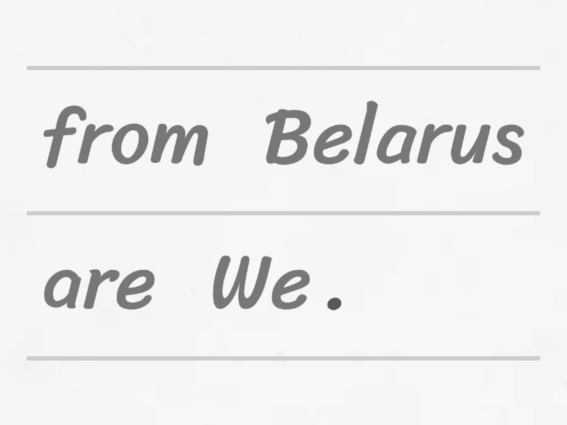 We are from Belarus., How old are you?, She has got a brown hamster., I love my little brother., His puppy likes to jump., This is a yellow tortoise,