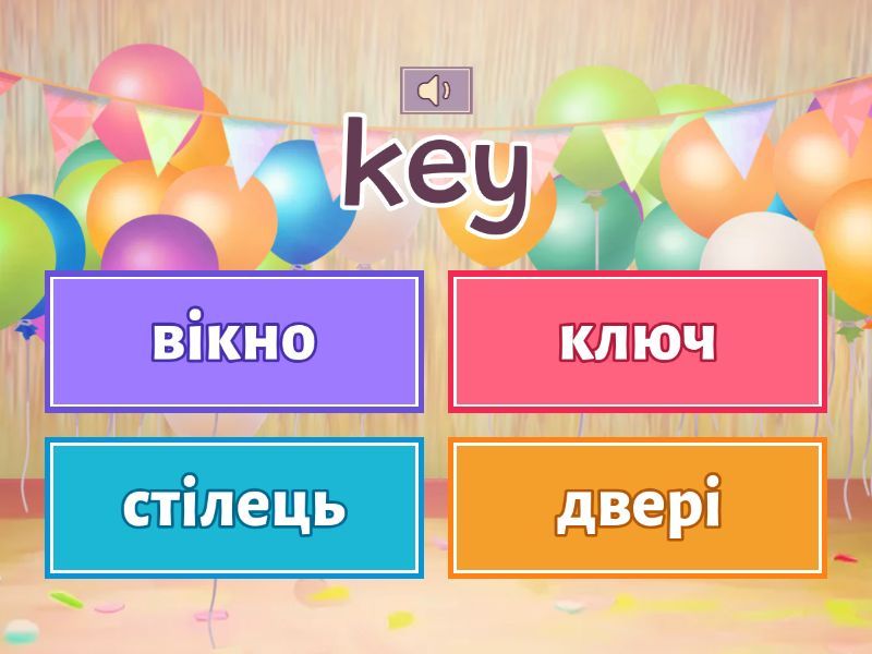 1) key a) вікно b) ключ c) стілець d) двері 2) lollipop a) цукерка b) шоколад c) льодяник d) печиво 3) jelly beans a) шоколадні боби b) мармелад c) жувальні цукерки d) желе 4) mum a) бабуся b) сестра c) тато d) мама 5) dad a) дядько b) дідусь c) тато d) брат 6) brother a) тато b) кузен c) брат d) сестра 7) sister a) бабуся b) мама c) тітка d) сестра 8) grandma a) сестра b) мама c) бабуся d) тітка 9) grandpa a) дядько b) дідусь c) брат d) тато 10) aunt a) бабуся b) сестра c) мама d) тітка 11) uncle a) дядько b) тато c) дідусь d) брат 12) cousin a) брат b) кузен c) сестра d) дядько 13) walk a) бігати b) плавати c) гуляти d) стрибати 14) talk a) співати b) читати c) говорити d) писати 15) play a) спати b) їсти c) грати d) пити