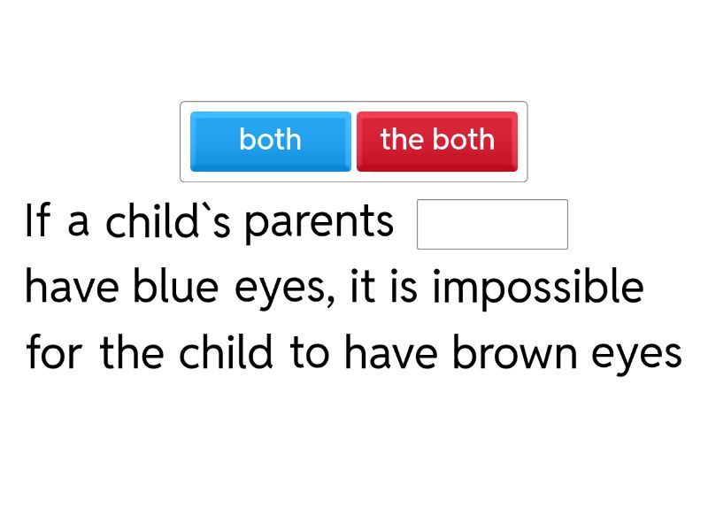 If a child`s parents ____ have blue eyes, it is impossible for the child to have brown eyes Almost ____ birds sing during the summer ____ time we sneeze, our breath stops for one second ____ of fruit and vegetables (but not all) contain vitamin C ____ men and women who are left-handed live longer than people who are right-handed Children grow more quickly in the summer than in ____ other season ____ dogs nor cats should be given cow`s milk to drink ____ thunderstorms happen at night ____ bones in our body continue to grow until we are 16 and then they stop growing A snake can`t see ____ if both its eyes are closed A new-born shark doesn`t swim close to ____ of its parents ____ of the footprints or tyre marks made on the moon are still visible today 12% of ____ humans that have ever been born are alive at this very moment Whales don`t have ____ teeth