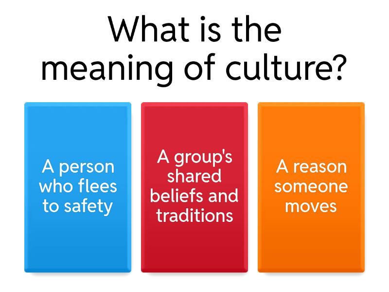 1) What is the meaning of culture? a) A person who flees to safety b) A group's shared beliefs and traditions c) A reason someone moves 2) What is migration? a) The movement of people from place to place b) Taking control of land c) Cruel treatment 3) Diversity means --- a) Everyone looks and thinks the same b) Differences within a group c) A journey to find safety 4) "Identity" refers to --- a) What makes someone unique b) The reason people fight c) Moving to a new place 5) Motives are --- a) The reasons behind actions b) People who flee danger c) Ways people celebrate 6) Influence means --- a) To change or affect something b) To escape something c) To take control by force 7) Conquer means --- a) To run away b) To settle in a new place c) To take control using force 8) To settle means --- a) To make a new home in a place b) To treat people cruelly c) To move away because of danger 9) A refugee is --- a) Someone forced to flee for safety b) A person who controls new land c) A leader of a group 10) What does persecution mean? a) The celebration of culture b) Cruel treatment because of differences c) Traveling for fun