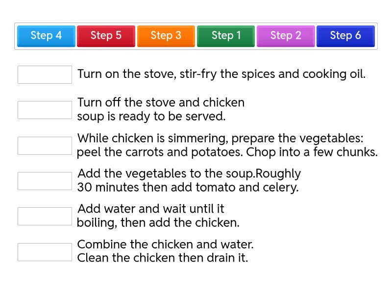 Arrange the steps - "How To Make Chicken Soup"