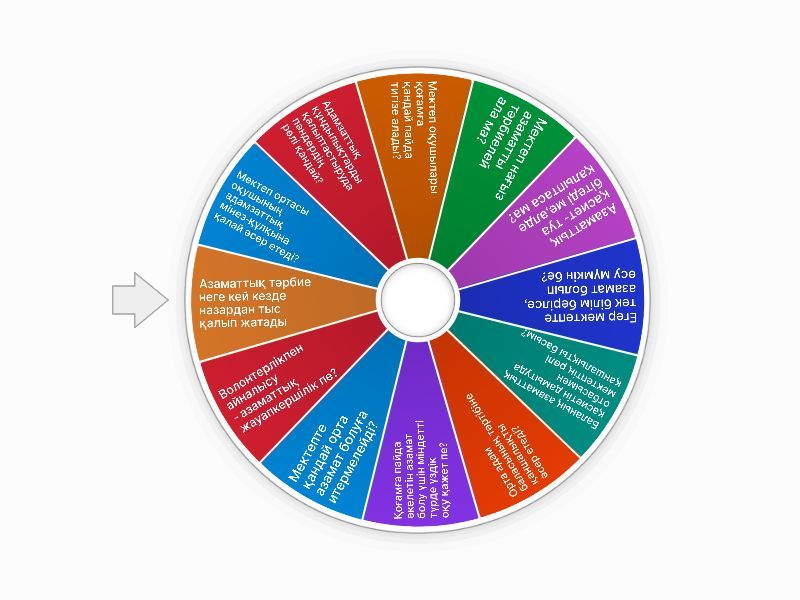 1) Мектеп ортасы оқушының адамзаттық мінез-құлқына қалай әсер етеді? 2) Адамзаттық құндылықтарды қалыптастыруда пәндердің рөлі қандай? 3) Мектеп оқушылары қоғамға қандай пайда тигізе алады? 4) Мектеп нағыз азаматты тәрбиелей ала ма? 5) Азаматтық қасиет- туа бітеді ме,әлде қалыптаса ма? 6) Егер мектепте тек білім берілсе, азамат болып өсу мүмкін бе? 7) Баланың азаматтық қасиетін дамытуда отбасымен мектептің рөлі қаншалықты басым? 8) Орта адам баласының тәртібіне қаншалықты әсер етеді? 9) Қоғамға пайда әкелетін азамат болу үшін міндетті түрде үздік оқу қажет пе? 10) Мектепте қандай орта азамат болуға итермелейді? 11) Волонтерлікпен айналысу - азаматтық жауапкершілік пе? 12) Азаматтық тәрбие неге кей кезде назардан тыс қалып жатады