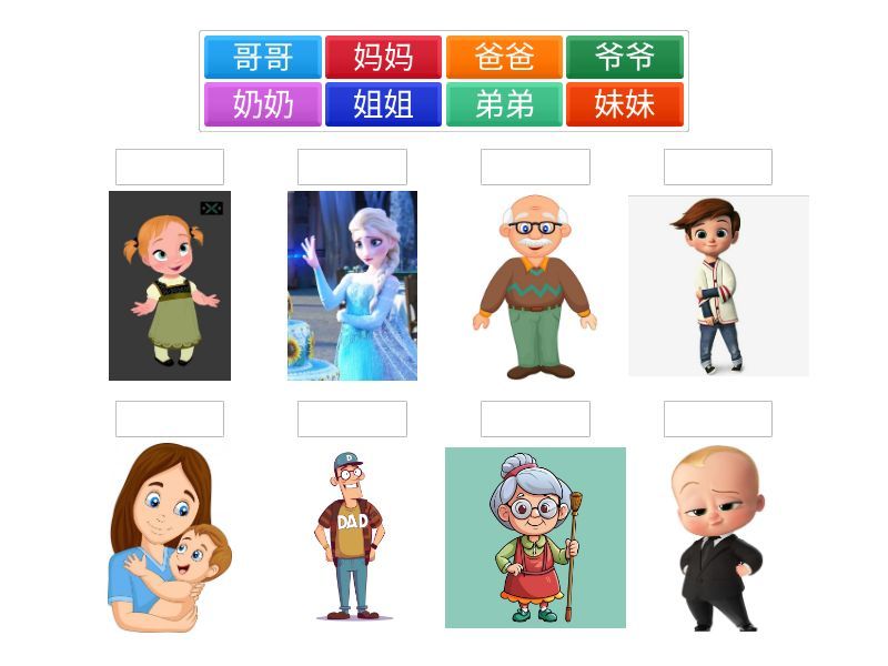 妈妈, 爸爸, 哥哥, 弟弟, 妹妹, 姐姐, 爷爷, 奶奶,