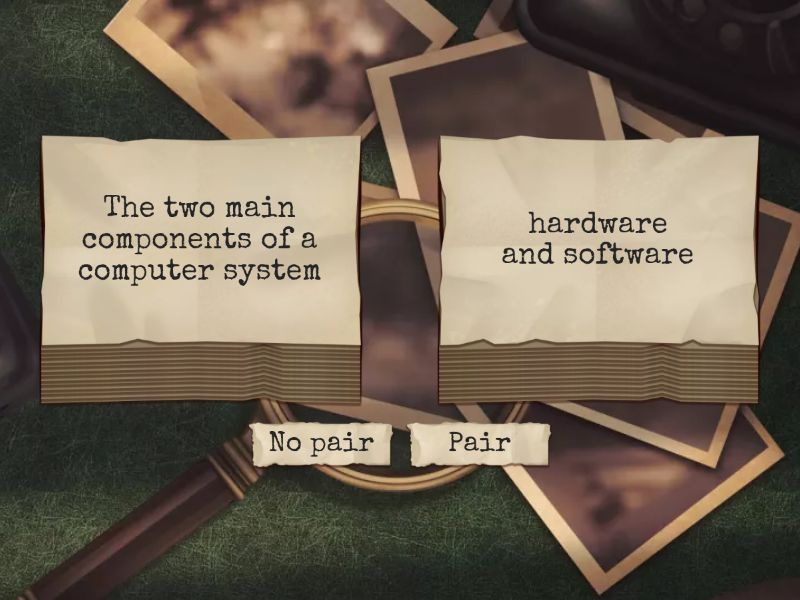 The two main components of a computer system - hardware and software, Specific sets of instructions given to a computer - programs or software, The physical parts of a computer that we can touch and see - hardware, Programs - software, The process of giving the computer instructions and data - input, The process of giving the user the results of processing - output, Computers process data into_________ - information, Unprocessed items - data, Controls all the activities in the computer. - the operating system, The process where a computer starts up and automatically loads the operating system. - booting, The way a computer is set up. - configuration, The process of getting access to programs on the computer. - logging on, The processes that the information processing cycle consists of - input, processing, output, storage, The most commonly-used input device - keyboard,