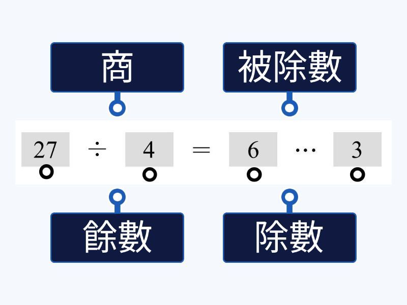 被除數, 除數, 商, 餘數.