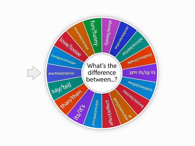 1) foreigner/stranger 2) lose/loose 3) remember/remind 4) fun/funny 5) alone/lonely 6) sensible/sensitive 7) advice/advise 8) shadow/shade 9) to fit/to suit 10) cushion/pillow 11) beside/besides 12) see/watch/look at 13) affect/effect 14) principal/principle 15) its/it's 16) than/then 17) say/tell 18) practise/practice