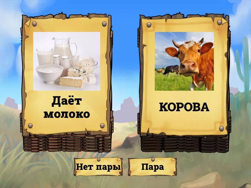 Даёт молоко - КОРОВА, Несёт яйца - КУРИЦА, Даёт шерсть - ОВЦА, Охраняет дом - СОБАКА, Помогает перевозить грузы - ЛОШАДЬ, Ловит мышей и крыс - КОШКА,