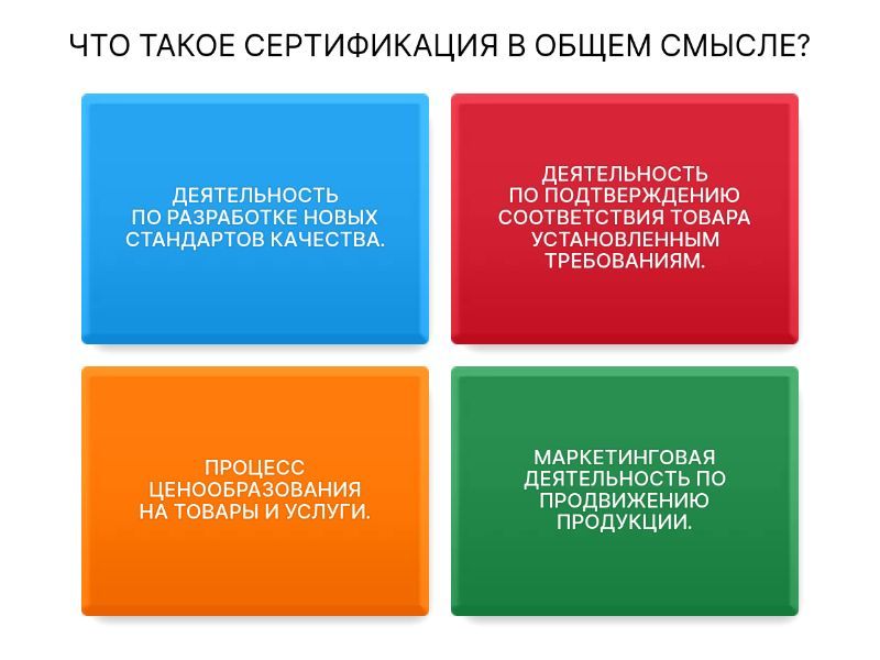 1) ЧТО ТАКОЕ СЕРТИФИКАЦИЯ В ОБЩЕМ СМЫСЛЕ? a) ДЕЯТЕЛЬНОСТЬ ПО РАЗРАБОТКЕ НОВЫХ СТАНДАРТОВ КАЧЕСТВА. b) ДЕЯТЕЛЬНОСТЬ ПО ПОДТВЕРЖДЕНИЮ СООТВЕТСТВИЯ ТОВАРА УСТАНОВЛЕННЫМ ТРЕБОВАНИЯМ. c) ПРОЦЕСС ЦЕНООБРАЗОВАНИЯ НА ТОВАРЫ И УСЛУГИ. d) МАРКЕТИНГОВАЯ ДЕЯТЕЛЬНОСТЬ ПО ПРОДВИЖЕНИЮ ПРОДУКЦИИ. 2) КАКАЯ ИЗ ПЕРЕЧИСЛЕННЫХ ЦЕЛЕЙ НЕ ЯВЛЯЕТСЯ ЦЕЛЬЮ СЕРТИФИКАЦИИ? a) ЗАЩИТА ПОТРЕБИТЕЛЯ ОТ НЕДОБРОСОВЕСТНОСТИ ИЗГОТОВИТЕЛЯ. b) СОЗДАНИЕ УСЛОВИЙ ДЛЯ ДЕЯТЕЛЬНОСТИ ПРЕДПРИЯТИЙ НА ЕДИНОМ ТОВАРНОМ РЫНКЕ. c) УСТАНОВЛЕНИЕ МОНОПОЛИИ ПРОИЗВОДИТЕЛЯ НА РЫНКЕ. d) ПОДТВЕРЖДЕНИЕ ПОКАЗАТЕЛЕЙ КАЧЕСТВА ПРОДУКЦИИ, ЗАЯВЛЕННЫХ ИЗГОТОВИТЕЛЕМ. 3) ЧТО ПОДТВЕРЖДАЕТ ЗНАК СООТВЕТСТВИЯ? a) ЧТО ПРОДУКЦИЯ ЯВЛЯЕТСЯ САМОЙ ДЕШЕВОЙ НА РЫНКЕ. b) ЧТО ПРОДУКЦИЯ СООТВЕТСТВУЕТ УСТАНОВЛЕННЫМ ТРЕБОВАНИЯМ. c) ЧТО ПРОДУКЦИЯ ПРОИЗВЕДЕНА ЗА РУБЕЖОМ. d) ЧТО ПРОИЗВОДИТЕЛЬ УПЛАТИЛ ВСЕ НАЛОГИ. 4) ЧЕМ ОБЯЗАТЕЛЬНАЯ СЕРТИФИКАЦИЯ ОТЛИЧАЕТСЯ ОТ ДОБРОВОЛЬНОЙ? a) ОБЯЗАТЕЛЬНАЯ СЕРТИФИКАЦИЯ ВСЕГДА ДЕШЕВЛЕ. b) ОБЯЗАТЕЛЬНАЯ СЕРТИФИКАЦИЯ ПРОВОДИТСЯ ТОЛЬКО ДЛЯ ЭКСПОРТИРУЕМЫХ ТОВАРОВ. c) ОБЯЗАТЕЛЬНАЯ СЕРТИФИКАЦИЯ ПРОВОДИТСЯ В ЗАКОНОДАТЕЛЬНО УСТАНОВЛЕННЫХ ОБЛАСТЯХ. d) ДОБРОВОЛЬНАЯ СЕРТИФИКАЦИЯ ТРЕБУЕТСЯ ПО ЗАКОНУ. 5) ЧТО ТАКОЕ АККРЕДИТАЦИЯ ИСПЫТАТЕЛЬНОЙ ЛАБОРАТОРИИ? a) ПРОЦЕДУРА ПРИЗНАНИЯ ВОЗМОЖНОСТИ ЛАБОРАТОРИИ ВЫПОЛНЯТЬ КОНКРЕТНЫЕ РАБОТЫ В ЗАЯВЛЕННОЙ ОБЛАСТИ. b) ПРОЦЕСС ПОКУПКИ НОВОГО ОБОРУДОВАНИЯ ДЛЯ ЛАБОРАТОРИИ. c) ВЫДАЧА СЕРТИФИКАТА СООТВЕТСТВИЯ НА ПРОДУКЦИЮ. d) ИНСПЕКЦИОННЫЙ КОНТРОЛЬ ЗА ДЕЯТЕЛЬНОСТЬЮ ПРЕДПРИЯТИЯ. 6) КАКОВА ЦЕЛЬ ИНСПЕКЦИОННОГО КОНТРОЛЯ ЗА СЕРТИФИЦИРОВАННОЙ ПРОДУКЦИЕЙ? a) УСТАНОВИТЬ, ЧТО ПРОДУКЦИЯ ПРОДОЛЖАЕТ СООТВЕТСТВОВАТЬ ТРЕБОВАНИЯМ, ПОДТВЕРЖДЕННЫМ ПРИ СЕРТИФИКАЦИИ. b) ОПРЕДЕЛИТЬ РЫНОЧНУЮ СТОИМОСТЬ ПРОДУКЦИИ. c) ПРОВЕРИТЬ ФИНАНСОВУЮ ОТЧЕТНОСТЬ ПРОИЗВОДИТЕЛЯ. d) РАЗРАБОТАТЬ НОВЫЙ СТАНДАРТ ДЛЯ ДАННОЙ ПРОДУКЦИИ. 7) КАКИЕ ИЗ ПЕРЕЧИСЛЕННЫХ ДОКУМЕНТОВ ОТНОСЯТСЯ К ВНУТРИГОСУДАРСТВЕННОМУ ПРАВУ В СТРУКТУРЕ ПРАВОВОЙ ЗАЩИТЫ ИНФОРМАЦИИ? a) ДЕКЛАРАЦИИ И ПАТЕНТЫ. b) ИСКЛЮЧИТЕЛЬНО АВТОРСКИЕ ПРАВА. c) ТОЛЬКО МЕЖДУНАРОДНЫЕ ЛИЦЕНЗИИ. d) КОНСТИТУЦИЯ, ЗАКОНЫ, УКАЗЫ, ПОСТАНОВЛЕНИЯ. 8) КАКОЙ ДОКУМЕНТ ГАРАНТИРУЕТ В РОССИИ "ТАЙНУ ПЕРЕПИСКИ, ТЕЛЕФОННЫХ ПЕРЕГОВОРОВ, ПОЧТОВЫХ, ТЕЛЕГРАФНЫХ И ИНЫХ СООБЩЕНИЙ"? a) УКАЗ ПРЕЗИДЕНТА №24. b) КОНЦЕПЦИЯ НАЦИОНАЛЬНОЙ БЕЗОПАСНОСТИ. c) КОНСТИТУЦИЯ РФ. d) ФЕДЕРАЛЬНЫЙ ЗАКОН "О ТЕХНИЧЕСКОМ РЕГУЛИРОВАНИИ". 9) КАКАЯ ИЗ ПЕРЕЧИСЛЕННЫХ ЗАДАЧ НЕ ВХОДИТ В КОНЦЕПЦИЮ НАЦИОНАЛЬНОЙ БЕЗОПАСНОСТИ РФ В ОБЛАСТИ ИНФОРМАЦИОННОЙ БЕЗОПАСНОСТИ? a) РЕАЛИЗАЦИЯ КОНСТИТУЦИОННЫХ ПРАВ И СВОБОД ГРАЖДАН В СФЕРЕ ИНФОРМАЦИОННОЙ ДЕЯТЕЛЬНОСТИ. b) ПРОТИВОДЕЙСТВИЕ УГРОЗЕ РАЗВЯЗЫВАНИЯ ПРОТИВОБОРСТВА В ИНФОРМАЦИОННОЙ СФЕРЕ. c) УСТАНОВЛЕНИЕ ГОСУДАРСТВЕННОЙ МОНОПОЛИИ НА ВСЕ СРЕДСТВА МАССОВОЙ ИНФОРМАЦИИ. d) СОВЕРШЕНСТВОВАНИЕ И ЗАЩИТА ОТЕЧЕСТВЕННОЙ ИНФОРМАЦИОННОЙ ИНФРАСТРУКТУРЫ. 10) ЧТО ЯВЛЯЕТСЯ ОДНИМ ИЗ ПРЕИМУЩЕСТВ ДОБРОВОЛЬНОЙ СЕРТИФИКАЦИИ? a) ОНА ЗАЩИЩАЕТ ИЗГОТОВИТЕЛЯ ОТ КОНКУРЕНЦИИ С ПОСТАВЩИКОМ НЕСЕРТИФИЦИРОВАННОЙ ПРОДУКЦИИ. b) ОНА ЗАМЕНЯЕТ НЕОБХОДИМОСТЬ УПЛАТЫ НАЛОГОВ. c) ОНА ПОЗВОЛЯЕТ ИЗБЕЖАТЬ ЛЮБОГО ИНСПЕКЦИОННОГО КОНТРОЛЯ. d) ОНА ДЕЛАЕТ ПРОДУКЦИЮ ОБЯЗАТЕЛЬНОЙ ДЛЯ ЗАКУПОК ГОСУДАРСТВОМ.