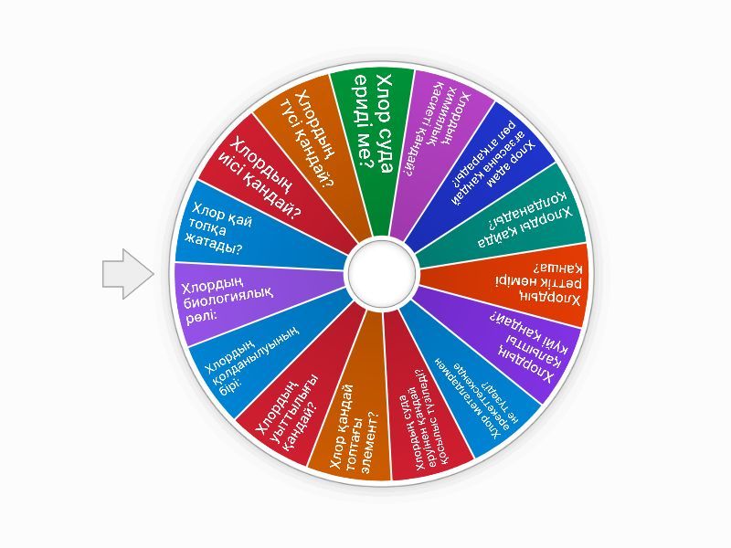 1) Хлор қай топқа жатады? a) VI b) VII c) IV 2) Хлордың иісі қандай? a) Өткір, тұншықтырғыш b) Иіссіз c) Хош иісті 3) Хлордың түсі қандай? a) қызыл b) сары-жасыл c) көк 4) Хлор суда ериді ме? a) Жоқ b) Иә c) Тек ыстық суда 5) Хлордың химиялық қасиеті қандай? a) Тотықтырғыш b) Сілтілік c) Тығыз емес 6) Хлор адам ағзасына қандай рөл атқарады? a) Ас қорытуға қатысады b) Нерв жүйесіне зиян келтірмейді c) Қан құрамын ұлғайтпайды 7) Хлорды қайда қолданады? a) Дезинфекция b) Пластмассаға қатысы жоқ c) Тамаққа дәм береді 8) Хлордың реттік нөмірі қанша? a) 17 b) 16 c) 18 9) Хлордың қалыпты күйі қандай? a) Газ b) Қатты c) Сұйық 10) Хлор металдармен әрекеттескенде не түзеді? a) Хлоридтер b) Сілтілер c) Газ 11) Хлордың суда еруінен қандай қосылыс түзіледі? a) HCl және HClO b) NaCl c) H2O2 12) Хлор қандай топтағы элемент? a) Галогендер b) Шеткі металдар c) Құрамында темір бар 13) Хлордың уыттылығы қандай? a) Өте улы b) Толық қауіпсіз c) Тек қатты күйінде улы 14) Хлордың қолданылуының бірі: a) ПВХ пластмасса өндіру b) Тек тамаққа дәм беру c) Кен шығару 15) Хлордың биологиялық рөлі: a) Су-тұз балансын реттейді b) Денеде энергия түзбейді c) Жай оттегі тасымалдаушы