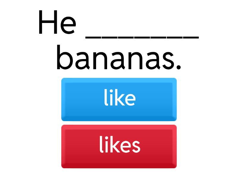 1) He _______ bananas. a) like b) likes 2) I _____ like milk. a) doesn't b) don't  3) ______ she like cheese? a) Does b) Do 4) _____ you like spinach? a) Do b) Does 5) I _____ asparagus. a) like b) likes 6) He ______ like broccoli. a) doesn't b) don't 7) _____ you like apples? a) Does b) Do 8) She ______ eggs. a) likes b) like 9) I ______ carrots. a) likes b) like 10) He _______ pizza. a) doesn't like b) don't like 11) She _______ sandwiches. a) don't like b) doesn't like 12) My sister ________ fish. a) doesn't like b) don't like 13) Tom ________ strawberries. a) like b) likes 14) ________ Jim like coconuts? a) Does b) Do