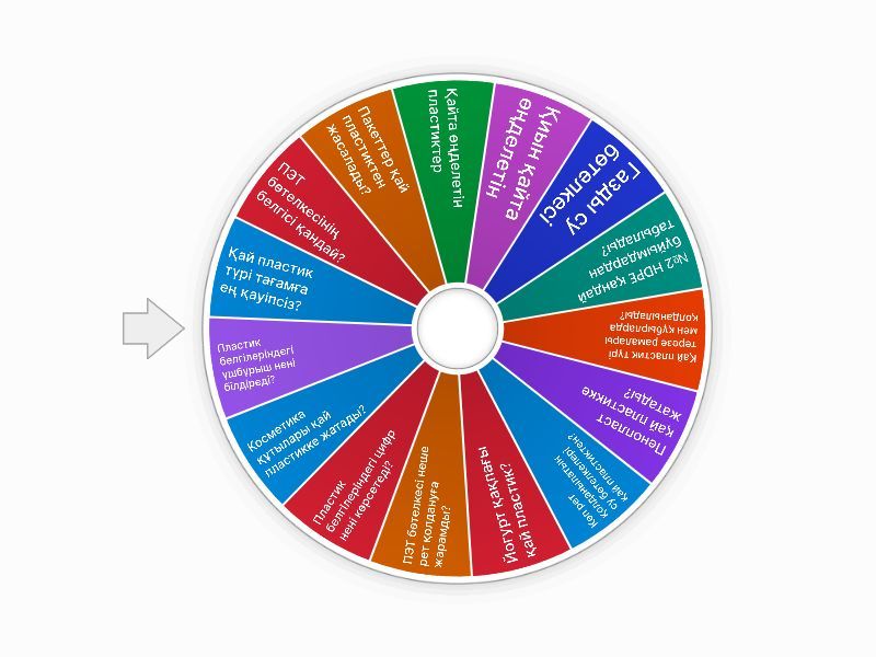 1) Қай пластик түрі тағамға ең қауіпсіз? a) 1 b) 5 c) 3 d) 7 2) ПЭТ бөтелкесінің белгісі қандай? a) 1 b) 7 c) 3 d) 5 3) Пакеттер қай пластиктен жасалады? a) 1 b) 2 c) 3 d) 4 4) Қайта өңделетін пластиктер a) 1,2,4,5 b) 5,3,4,2 c) 7,6,5,3 d) 1,2,3,4 5) Қиын қайта өңделетін a) 1,2,3 b) 3,6,7 c) 4,5,6 d) 3,4,5 6) Газды су бөтелкесі a) №6 PS b) №1 PET c) №4 LDPE d) Барлық жауап дұрыс емес 7) №2 HDPE қандай бұйымдардан табылады? a) Шампунь бөтелкесі b) Пенопласт c) Пакет d) Терезе рамасы 8) Қай пластик түрі терезе рамалары мен құбырларда қолданылады? a) PP (5) b) PVC (3) c) PS (6) d) PET (1) 9) Пенопласт қай пластикке жатады? a) PP (5) b) LDPE (4) c) PS (6) d) PET (1) 10) Көп рет қолданылатын су бөтелкелері қай пластиктен? a) PET (1) b) HDPE (2) c) OTHER (7) d) PP (5) 11) Йогурт қақпағы қай пластик? a) LDPE (4) b) PET (1) c) PP (5) d) PVC (3) 12) ПЭТ бөтелкесі неше рет қолдануға жарамды? a) 10 рет b) 1 рет c) 3 рет d) көп рет 13) Пластик белгілеріндегі цифр нені көрсетеді? a) Пластиктің түрі b) Қай жылы жасалғаны c) Өнімнің бағасы d) Өндірушінің коды 14) Косметика құтылары қай пластикке жатады? a) 7 b) 3 c) 4 d) 5 15) Пластик белгілеріндегі үшбұрыш нені білдіреді? a) Қауіпсіздік b) Қайта өңдеу c) Тағамға жарамдылық d) Өлімге қауіптілік