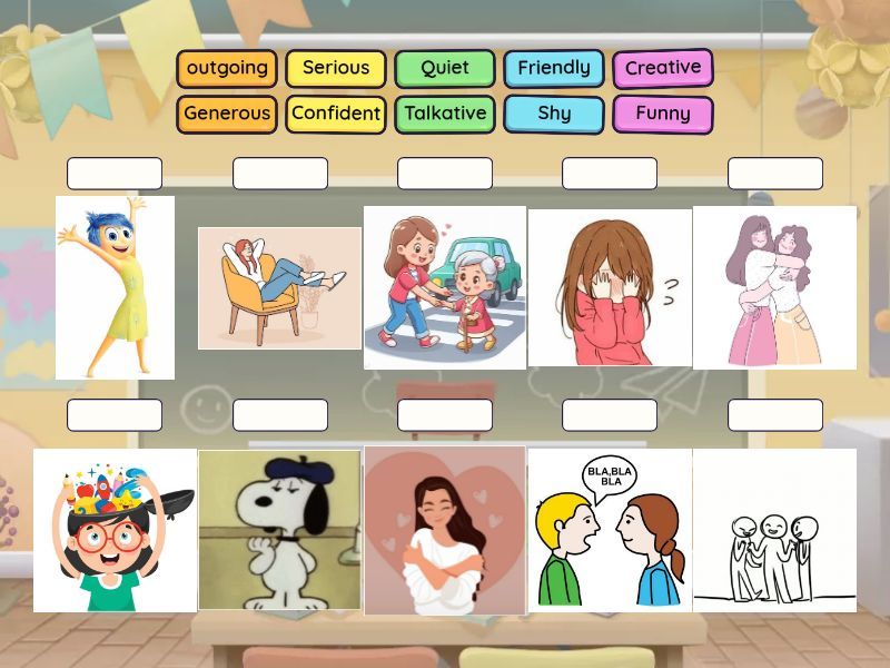 outgoing , Creative, Friendly, Talkative, Serious, Confident, Quiet, Shy, Generous, Funny,