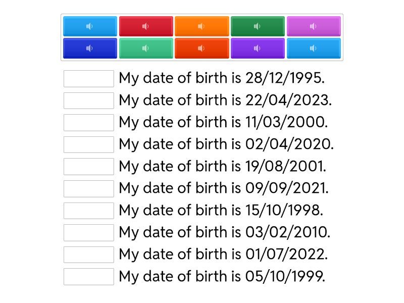 My date of birth is 09/09/2021., My date of birth is 02/04/2020., My date of birth is 22/04/2023., My date of birth is 01/07/2022., My date of birth is 15/10/1998., My date of birth is 05/10/1999., My date of birth is 28/12/1995., My date of birth is 11/03/2000., My date of birth is 19/08/2001., My date of birth is 03/02/2010.,