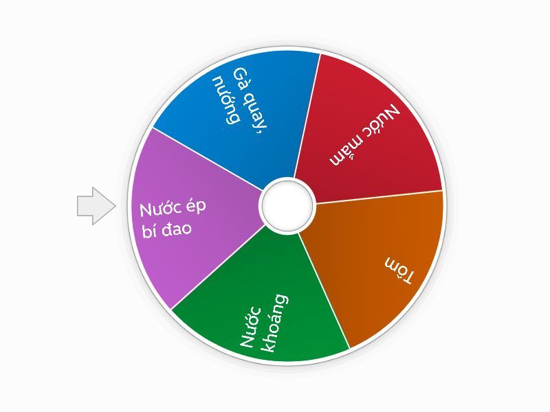1) Gà quay, nướng 2) Nước mắm 3) Tôm 4) Nước khoáng 5) Nước ép bí đao
