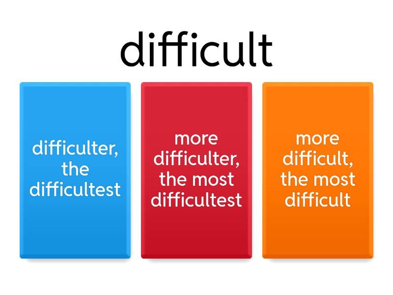 1) difficult a) difficulter, the difficultest b) more difficulter, the most difficultest c) more difficult, the most difficult 2) boring a) boringer, the boringest b) more boring, the most boring 3) expensive a) more expensive, the most expensive b) expensiver, the expensivest 4) cheap a) cheaper, the cheapest b) more cheap, the most cheap 5) tall a) taler, the talest b) more tall, the most tall c) taller, the tallest 6) short a) shorter, the shortest b) more short, the most short c) shorter, shortest 7) funny a) funnyer, the funnyest b) funnier, the funniest c) more funny, the most funny 8) happy a) happier, the happiest b) more happy, the most happy c) happyer, the happyest 9) lazy a) lazyer, lazyest b) more lazy, the most lazy c) lazier, the laziest 10) tasty a) tastier, the tastiest b) more tasty, the most tasty c) tastyer, tastyest 11) healthy a) more healthy, the most healthy b) healthier, the healthiest 12) stylish a) stylisher, the stylishest b) more stylish, the most stylish 13) deliciuos a) more delicious, the most delicious b) deliciuoser, the deliciuosest 14) cold a) colder, coldest b) colder, the coldest c) more cold, the most cold