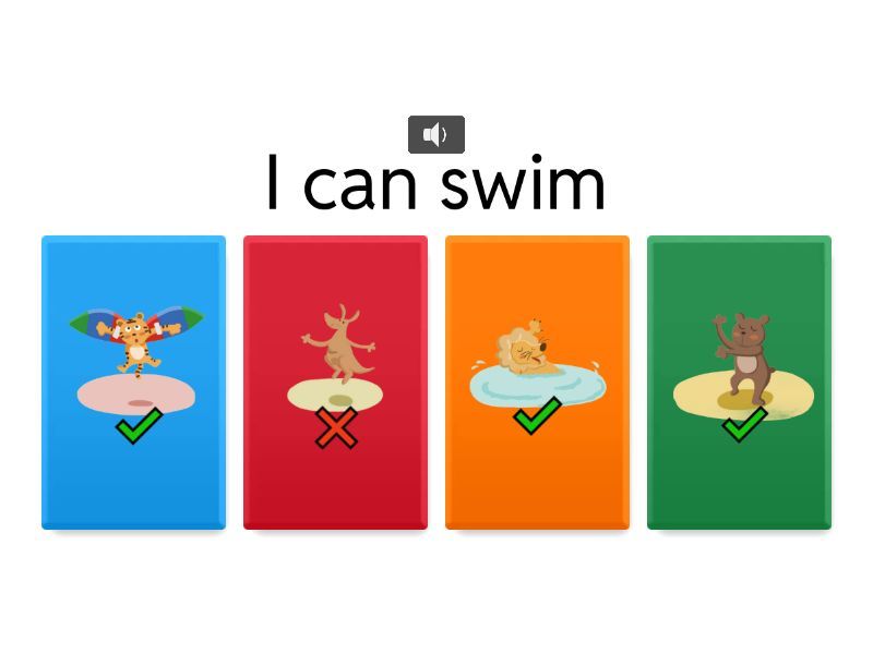 1) I can swim a) b) c) d) 2) I can't swim a) b) c) d) 3) I can fly a) b) c) d) 4) I can't fly a) b) c) d) 5) I can jump a) b) c) d) 6) I can't jump a) b) c) d)