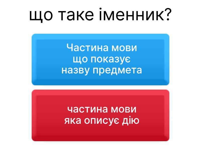 1) що таке іменник? a) Частина мови що показує назву предмета b) частина мови яка описує дію 2) на які запитання відповідає прикметник a) який яка яке які b) хто що 3) скільки є службових частин мови a) 3 b) 5 4) скільки є самостійних частини мови a) 6 b) 9 5) які є службові частини мови? a) Частка, займенник, прислівник b) сполучник прийменник частка