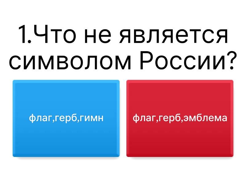 1) 1.Что не является символом России? a) флаг,герб,гимн b) флаг,герб,эмблема 2) 2.Какой праздник отмечается 12 июня? a) День России b) День Победы c) Международный Женский день d) День Защитника Отечества 3) 3.Одно из главных природных богатств России? a) лес,нефть b) каменный уголь, природный газ 4) Из какого дерева изготавливают бересту? a) дуб b) осина c) берёза d) ольха 5) Как называется деревянный, бревенчатый дом? a) изба b) квартира c) сарай d) дом 6) Известный во всём миру музыкальный русский инструмент a) гитара b) пианино c) балалайка d) труба 7) Известный русский баснописец , написавший 236 басен a) Иван Бунин b) Иван Крылов c) Лев Толстой d) Михаил Лермонтов 8) Главная кормилица на Руси, дающая молоко,сметану, сливки,сыр... a) фабрика b) корова c) земля d) повар 9) Одно из древнейших русских блюд, главный ингредиент является - рыба? a) плов b) уха c) окрошка d) щи 10) Сколько копеек в рубле? a) 100 b) 1 c) 10 d) 1000 11) Праздник на Руси, провожающий зиму и трапезничая блинами? a) Пасха b) Иван Купала c) Масленица d) Рождество 12) Сколько букв в Российском алфавите? a) 33 b) 25 c) 35 d) 28 13) Один из главных овощей в России. Из неё варят щи, а на зиму квасят a) картофель b) капуста c) морковь d) свёкла 14) Чем на Руси было принято встречать гостей? a) песнями, сказками b) хлебом-солью c) комплиментами d) угощеньями 15) Какое дерево наряжают на Новый год? a) кедр b) ель c) сосна d) лиственница