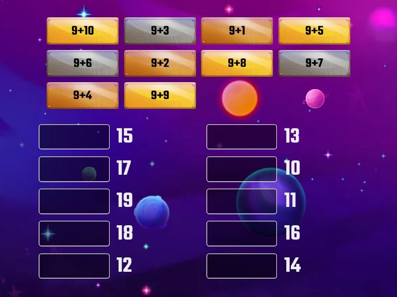 9+1 - 10, 9+2 - 11, 9+3 - 12, 9+4 - 13, 9+5 - 14, 9+6 - 15, 9+7 - 16, 9+8 - 17, 9+9 - 18, 9+10 - 19,
