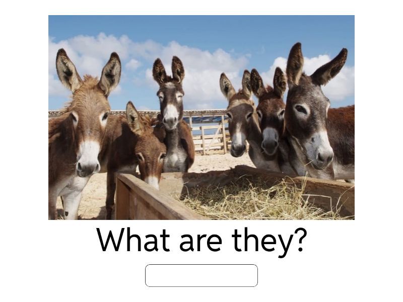 What is it?, What is it?, What is it?, What is it?, What is it?, What is it?, What is it?, What is it?, What are they?, What are they?, What are they?, What are they?, What are they?, What are they?, What are they?, What are they?, Is it a cow?, Is it a goat?, Is it a rabbit?, Is it a donkey?, Is it a hen?, Is it a rooster?, Is it a horse?, Is it a duck?, Is it a cow?.