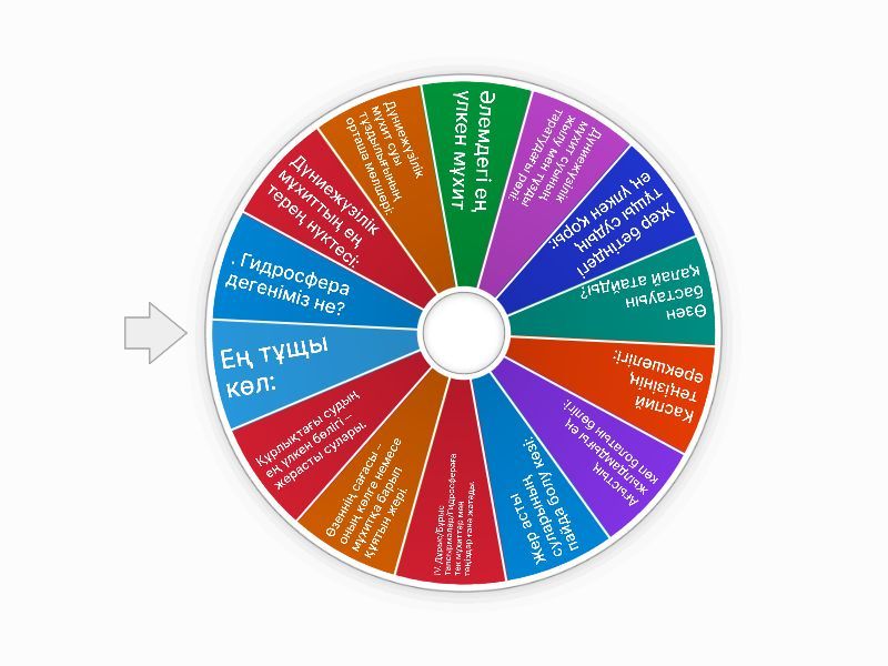 1) . Гидросфера дегеніміз не? a) Жердің ауа қабаты b) Жердің су қабығы c) Жердің өсімдік жамылғысы d) Тау жыныстарының жиынтығы 2) Дүниежүзілік мұхиттың ең терең нүктесі: a) Тонга шұңғымасы b) Филиппин шұңғымасы c) Мариан шұңғымасы d) Курил шұңғымасы 3) Дүниежүзілік мұхит суы тұздылығының орташа мөлшері: a) 10‰ b) 18‰ c) 25‰ d) 35‰ 4) Әлемдегі ең үлкен мұхит a) Атлант мұхиты b) Тынқ мұхиты c) Үнді мұхит d) Солтүстік мұзды мұхиты 5) Дүниежүзілік мұхит суының жылу мен тұзды таратудағы рөлі: a) Тек жылуды таратады b) Климатты қалыптастыруға қатыспайды c) Климатты реттеуге үлкен әсер етеді d) Тек материктерді шайып өтедіі 6) Жер бетіндегі тұщы судың ең үлкен қоры: a) Өзендерде b) Көлдерде c) Мұздықтар мен қарларда d) Жерасты суларында 7) Өзен бастауын қалай атайды? a) Сағасы b) Жайылма c) Қоректену көзі d) Бастауы 8) Каспий теңізінің ерекшелігі: a) Дүниежүзілік мұхитқа жалғасады b) Жер шарындағы ең үлкен тұйық көл c) Тұздығы өте төмен d) Тек тұщы суы бар 9) Ағыстың жылдамдығы ең көп болатын бөлігі: a) Сағада b) Бастауда c) Орта ағысында d) Жайылмада 10) Жер асты суларының пайда болу көзі: a) Тек өзендер b) Атмосфералық жауын-шашын c) Мұхит суыда d) Топырақ эрозиясыда 11) IV. Дұрыс/Бұрыс тапсырмалар/Гидросфераға тек мұхиттар мен теңіздер ғана жатады. a) Дұрыс b) Бұрыс 12) Өзеннің сағасы – оның көлге немесе мұхитқа барып құятын жері. a) Бұрыс b) Дұрыс 13) Құрлықтағы судың ең үлкен бөлігі – жерасты сулары. a) Дұрыс b) Бұрыс 14) Ең тұщы көл: a) Байкал b) Женева c) Мичиган d) Арал