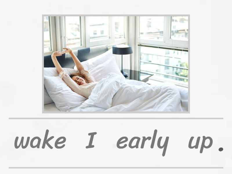 I wake up early., I make my bed., I brush my teeth., I wash my face., I cook breakfast., I sweep the floor., I wash the dishes., I take out the trash., I fold the clothes., I go to bed at 10 p.m.,