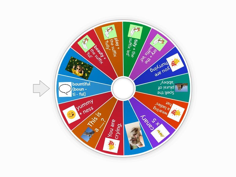 1) beauty + the suffix 'ful' 2) play + the suffix 'fully' 3) tidy + the suffix 'ed' 4) cry + the suffix 'ed' 5) you are hurrying 6) Spell the plural of 'abbey' 7) wearing a ladies' hat 8) canary x 5 9) You are crying. 10) This is a .....? 11) yummy + ness 12) bountiful (boun - ti - ful)
