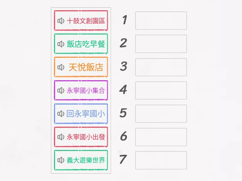 永寧國小集合, 永寧國小出發, 十鼓文創園區, 天悅飯店, 飯店吃早餐, 義大遊樂世界, 回永寧國小.