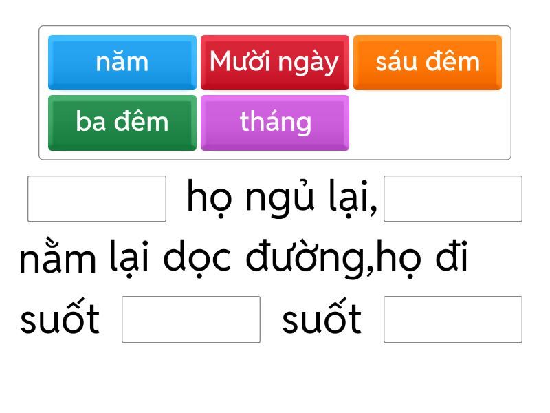 ____ họ ngủ lại,____ nằm lại dọc đường,họ đi suốt ____ suốt ____