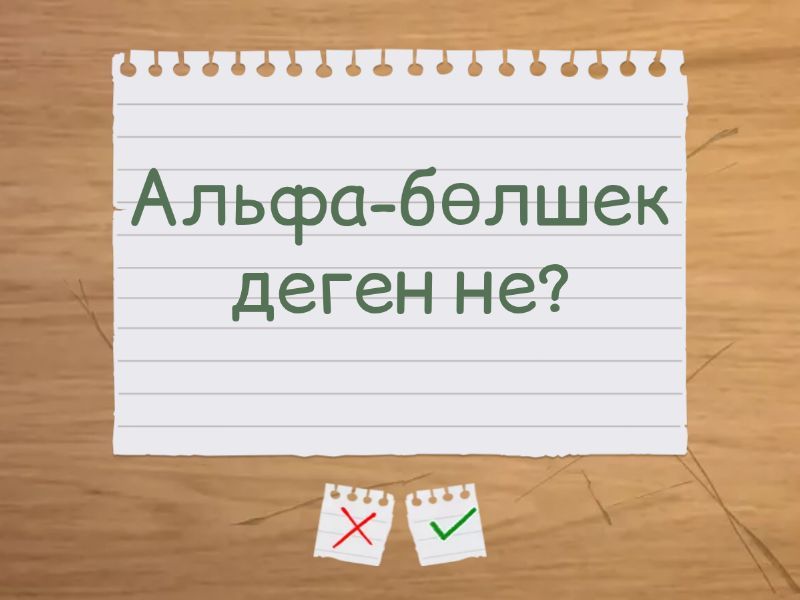 Атом дегеніміз не? - Атом — заттың ең кіші химиялық бөлінбейтін бөлігі, ядро және оны айналып жүретін электрондардан тұрады., Ядро қандай бөлшектерден тұрады? - Ядро протондар мен нейтрондардан тұрады., Изотоп дегеніміз не? - Протон саны бірдей, бірақ нейтрон саны әртүрлі атом түрлері изотоп деп аталады., Радиоактивтілік дегеніміз не? - Тұрақсыз атом ядроларының өздігінен ыдырап, сәуле шығару процесі радиоактивтілік деп аталады., Альфа-бөлшек деген не? - Альфа-бөлшек — екі протон және екі нейтроннан тұратын гелий ядросы., Бета-ыдырау дегеніміз не? - Бета-ыдырау — нейтронның протонға немесе протонның нейтронға айналып, электрон немесе позитрон шығару процесі., Ядролық реактордың негізгі қызметі қандай? - Ядролық реакторда бөліну реакциясынан алынған энергияны жылу түрінде шығару және оны электр энергиясына айналдыру., Тізбекті реакция дегеніміз не? - Бір ядроның бөлінуінен пайда болған нейтрондар басқа ядроларды бөлуін жалғастырып отыратын процесс тізбекті реакция деп аталады., Ядролық синтез дегеніміз не? - Екі жеңіл ядроның қосылып, ауыр ядро түзу процесі ядролық синтез деп аталады., Иондаушы сәуле деген не? - Зат атомдарын иондай алатын жоғары энергиялы сәуле түрлері (α, β, γ) — иондаушы сәулелер.,