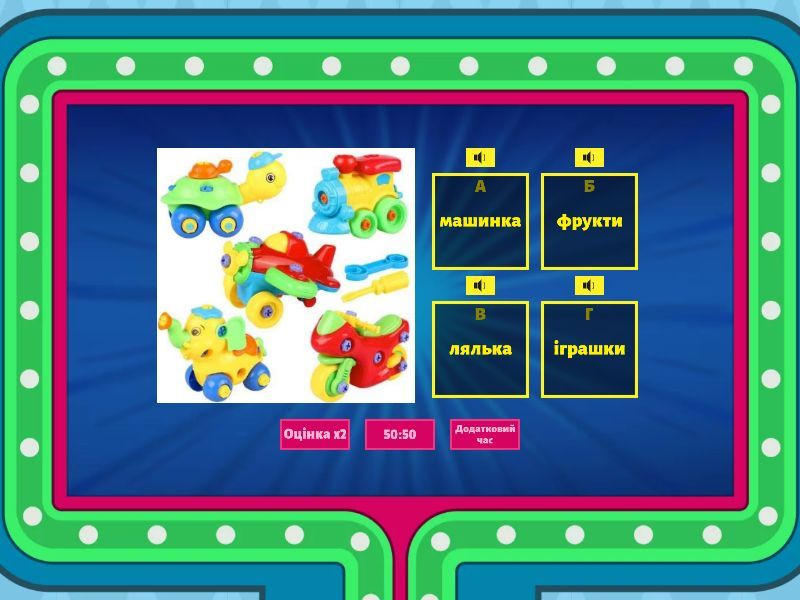 1) Що дарує Святий Миколай? a) одяг b) овочі c) іграшки d) квіти 2) Коли святкують День Святого Миколая? a) 1 січня b) 19 грудня c) 25 грудня d) 7 січня 3) Що кладуть під подушку на свято? a) подарунки b) гроші c) книги d) фрукти 4) Який символ свята? a) сніжинка b) ялинка c) зірка d) чобіток 5) Що роблять діти перед святом? a) грають b) співають пісні c) малюють d) пишуть листи 6) Який колір має одяг Святого Миколая? a) червоний b) зелений c) синій d) жовтий 7) Що роблять діти на свято? a) малюють b) танцюють c) співають d) читають
