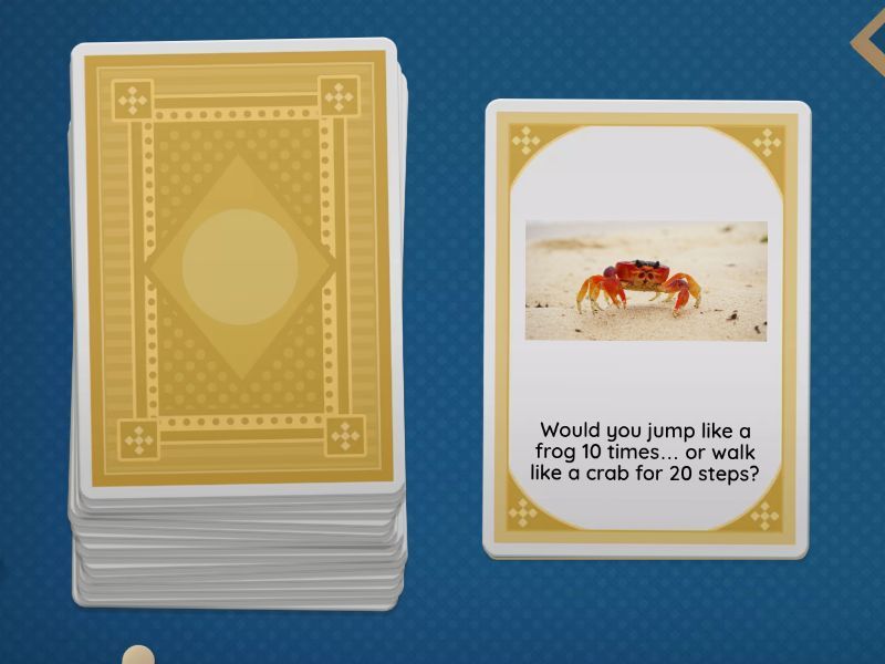 Would you climb a small hill… or swim across a short pool?, Would you try to balance on one foot for 20 seconds… or hop on one foot 20 times?, Would you sing your favorite song… or dance for 30 seconds?, Would you try to draw a cat with your eyes closed… or draw it with your non-dominant hand?, Would you try to run in slow motion… or walk like a robot for 1 minute?, Would you try to say a tongue twister… or spell a long word?, Would you jump like a frog 10 times… or walk like a crab for 20 steps?, Would you try to make a silly face… or make a silly pose?, Would you do 5 star jumps… or 5 push-ups (kid-friendly)?, Would you try to whistle… or snap your fingers?, Would you stack 5 cups… or build a tower with blocks?, Would you try a new food… or try a new sport?, Would you try to speak for 30 seconds without saying “um”… or tell a 10-second story?, Would you try to stand completely still for 20 seconds… or walk in a straight line with your eyes closed?, Would you jump over a small object… or crawl under a chair?.