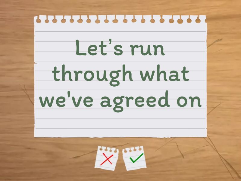 Is everyone ready to get started? - Всі готові починати?, Sorry for being late - Вибачте за запізнення, Sorry to interrupt, but … OR Sorry for interrupting, but … - Вибач, що перебиваю, How long is the meeting supposed to last? - Скільки буде тривати ця зустріч?, I would like to take a couple of minutes to talk about our plans - Я хотів би приділити декілька хвилин нашим планам, Should we be moving on to the next point? - Чи не варто нам вже переходити до іншого пункту?, We have plenty of time - У нас достатньо часу, Let’s run through what we've agreed on - Давайте пробіжимось по тому, про що ми домовились, Could you please get it down/write it down/note it down - Можеш це будь ласка записати?, Thanks for pointing that out - Дякую, що звернув на це увагу, I would like to get your feedback on the last updates - Я хотів би отримати ваш фідбек щодо останнього апдейту, Are we on the same page about this? - Ми на одній хвилі щодо цього?, Let’s move on to the next item - Перейдемо до наступного пункту,
