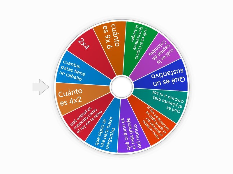 1) cuantas patas tiene un caballo  a) 4 b) 2 2) 2x4 a) 8 b) 10 3) cuánto es 9x 6 a) 54 b) 46 c) 63 d) todas las anteriores 4) cuál es el órgano que bombea la sangre a) corazón b) los pulmones c) el estómago d) todas las anteriores 5) cuál es la capital de Colombia a) Medellín b) Bogotá 6) Qué es un sustantivo a) palabra que nombra personas, animales o cosas b) una acción c) un sonido d) todas las anteriores 7) cuál es el planeta más cercano a el sol a) mercurio b) Marte c) todas las anteriores d) Venus 8) cómo se llama el proceso por el que el agua se convierte en vapor a) evaporación b) condensación c) filtración d) debe pasar por todas tres para poder ser vapor 9) qué océano es el más grande del mundo a) océano pacifico b) atlántico 10) que signo se usa para hacer preguntas a) ¡! b) ¿? 11) qué animal es conocido como el rey de la selva a) Tigre b) León c) oso  d) Elefante 12) Cuánto es 4x2 a) 8 b) 16