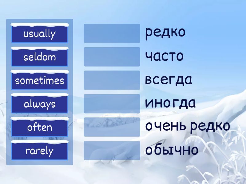 usually - обычно, always - всегда, sometimes - иногда, seldom - редко, often - часто, rarely - очень редко,