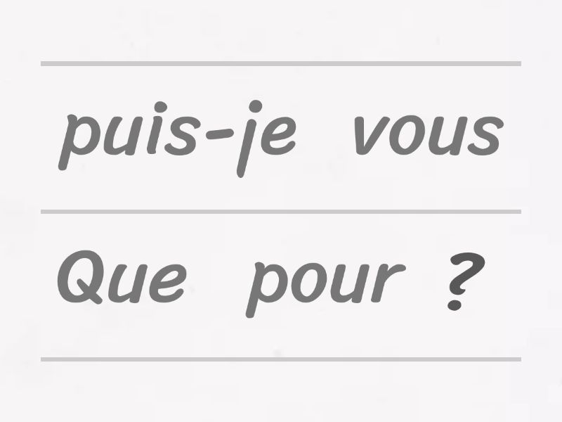 Que puis-je pour vous ?, Que voulez-vous comme boisson ?, Vous avez pris une décision ?, Quelle cuisson voulez-vous ?, Vous préférez les frites ou la salade ?, Voulez-vous prendre un dessert ?, C'est bien la tarte aux pommes pour vous ?, Je vous apporte ça.,