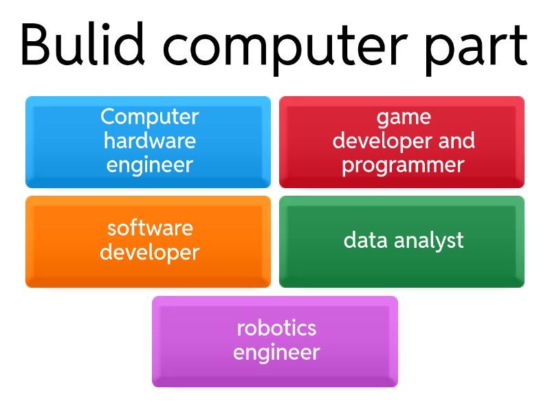1) work in space industry a) Computer hardware engineer b) game developer and programmer c) software developer d) data analyst e) robotics engineer 2) Its work with other scientists a) Computer hardware engineer b) game developer and programmer c) software developer d) data analyst e) robotics engineer 3) Design robot a) Computer hardware engineer b) game developer and programmer c) software developer d) data analyst e) robotics engineer 4) Look at what people buy in large grocery stores a) Computer hardware engineer b) game developer and programmer c) software developer d) data analyst e) robotics engineer 5) Collect , organise, ask questions, make decisions, and find answers  a) Computer hardware engineer b) game developer and programmer c) software developer d) data analyst e) robotics engineer 6) Explain what find to people with little knowledge of computing a) Computer hardware engineer b) game developer and programmer c) software developer d) data analyst e) robotics engineer 7) Improve the code in application for smartphone a) Computer hardware engineer b) game developer and programmer c) software developer d) data analyst e) robotics engineer 8) Write code for applications a) Computer hardware engineer b) game developer and programmer c) software developer d) data analyst e) robotics engineer 9) Work for large social media companies and network a) Computer hardware engineer b) game developer and programmer c) software developer d) data analyst e) robotics engineer 10) Write and develop games a) Computer hardware engineer b) Computer programmer c) software developer d) data analyst e) robotics engineer 11) Who write programs to tell the robot what to do a) Computer hardware engineer b) Computer programmer c) software developer d) data analyst e) robotics engineer 12) Create games a) Computer hardware engineer b) game developer and programmer c) software developer d) data analyst e) robotics engineer 13) He design and test computer hardware that make up computer, like CPUs a) Computer hardware engineer b) game developer and programmer c) software developer d) data analyst e) robotics engineer 14) He has understand complicated computer system in his job a) Computer hardware engineer b) game developer and programmer c) software developer d) data analyst e) robotics engineer 15) Bulid computer part a) Computer hardware engineer b) game developer and programmer c) software developer d) data analyst e) robotics engineer