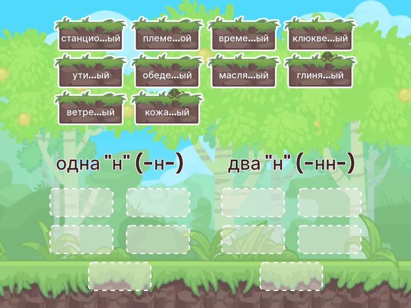 одна "н" (-н-): кожа...ый, ути...ый, глиня...ый, ветре...ый, масля...ый, два "н" (-нн-): време...ый, станцио...ый, обеде...ый, племе...ой, клюкве...ый,