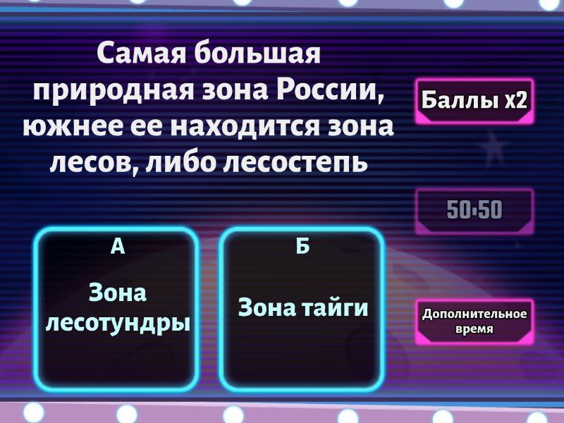 1) Самая большая природная зона России, южнее ее находится зона лесов, либо лесостепь a) Зона лесотундры b) Зона тайги 2) В этой холодной природной зоне короткое, прохладное лето и суровая длинная зима с сильными ветрами с Северного Ледовитого океана. a) Зона тундры b) Зона лесотундры 3) В этой зоне большие запасы древесины, в недрах земли — месторождения полезных ископаемых. a) Зона смешаных лесов b) Тропики 4) На самом севере России, на островах Северного Ледовитого океана находится зона ... a) Арктических пустынь b) Зона тундры 5) В этой природной зоне более теплое лето и ветра слабее, чем в тундре. Зима холодная, снежная длится более 9 месяцев. a) Зона лесотундры b) Зона тайги 6) Это переходная зона между зоной лесов и степной зоной a) Лесостепь b) Степь 7) Эта зона с равнинной поверхностью, песчаными барханами или глинистыми и каменистыми поверхностями. a) Тропики b) Пустыня 8) В России эта территория небольшая – узкая часть прибрежной суши у Черного моря до гор Кавказа. В этой зоне — тропическое лето, зимы практически нет. a) Тропики b) Субтропики 9) Какой природной зоны нет в России? a) Субтропическая b) Арктические пустыни c) Тропическая d) Пустыни 10) Какая природная зона в России занимает наибольшую площадь? a) Степи b) Пустыни c) Леса d) Субтропики 11) В какой природной зоне самый холодный и суровый климат? a) Пустыни b) Тундра c) Тайга d) Арктические пустыни 12) Какой тип почвы характерен для зоны степей? a) Вечная мерзлота b) Лесная почва c) Подзолистая почва d) Чернозем 13) В какой природной зоне растет ягель? a) Тундра b) Тайга c) Лесная зона d) Степи