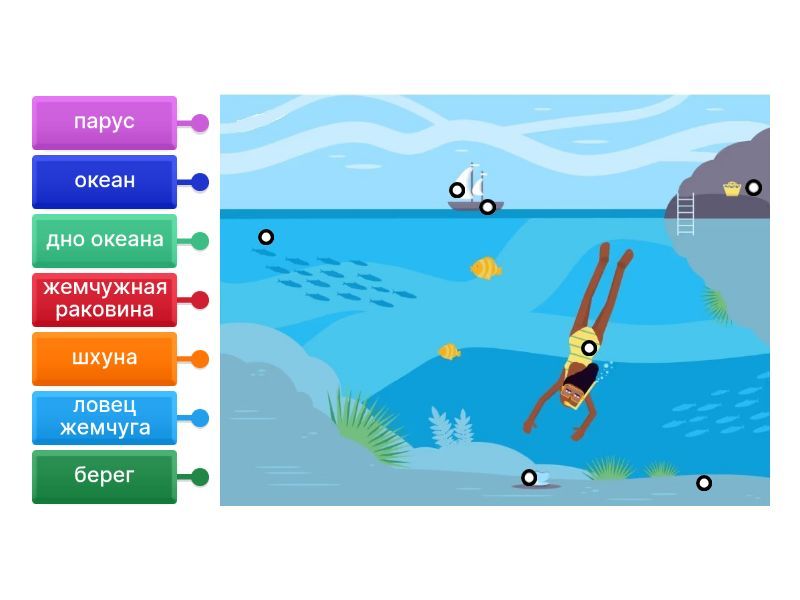 ловец жемчуга, жемчужная раковина, шхуна, берег, парус, океан, дно океана.
