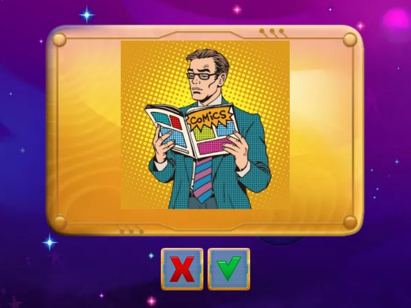 Is she listening to music?, Is he watching TV?, Is he playing frisbee?, Is he reading comics? , Is he flying a kite? , Is he playing chess? , Is he playing ice hockey? , Is she playing table tennis? , Is he playing hide and seek? , Is she doing judo? ,