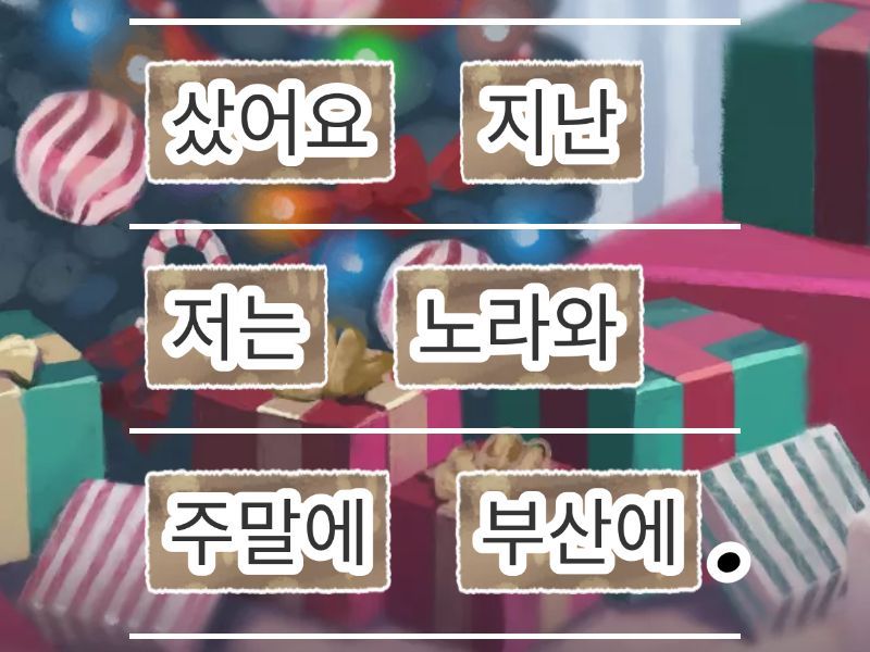 노라와 저는 지난 주말에 부산에 샀어요., 토요일에 부산 여기저기를 구경하고 음식도 많이 먹었어요., 부산에서 먹은 음식이 아주 맛있었어요., 우리는 바다에서 수영도 했어요., 우리가 수영한 바다는 경치가 아주 아름다웠어요., 그리고 바다 옆에 예쁜 가게들이 많았어요., 우리는 가게에서 불편을 샀어요., 우리가 산 볼펜은 비싸지 않았어요., 우리는 부산 호텔에서 잤어요., 우리가 잔 호텔은 크고 좋았어요., 일요일 아침에 자갈치시장에 갔어요., 사진을 많이 찍었어요., 이 사진이 우리가 찍은 사진이에요., 우리는 부산에서 많은 사람들을 많았어요., 부산에서 만난 사람들은 모두 친절했어요.,